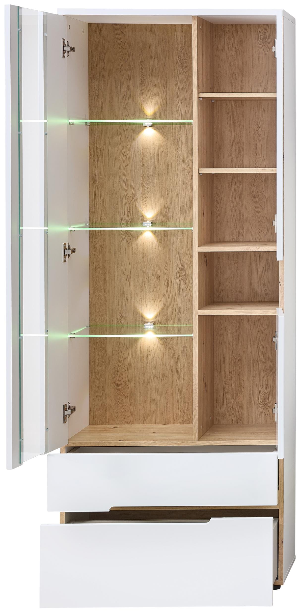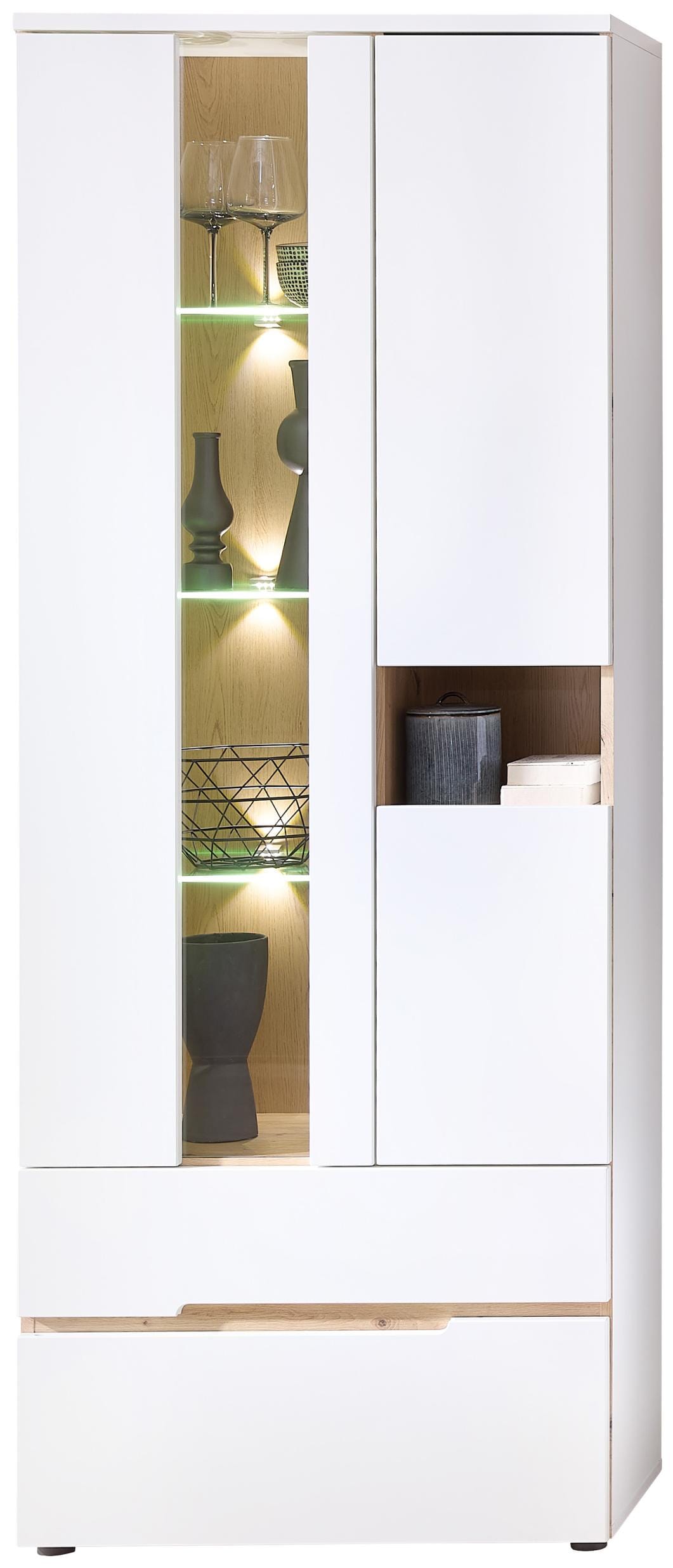 Vitrine MEMPHIS Weiß mit Artisan Eiche Nachbildung und LED