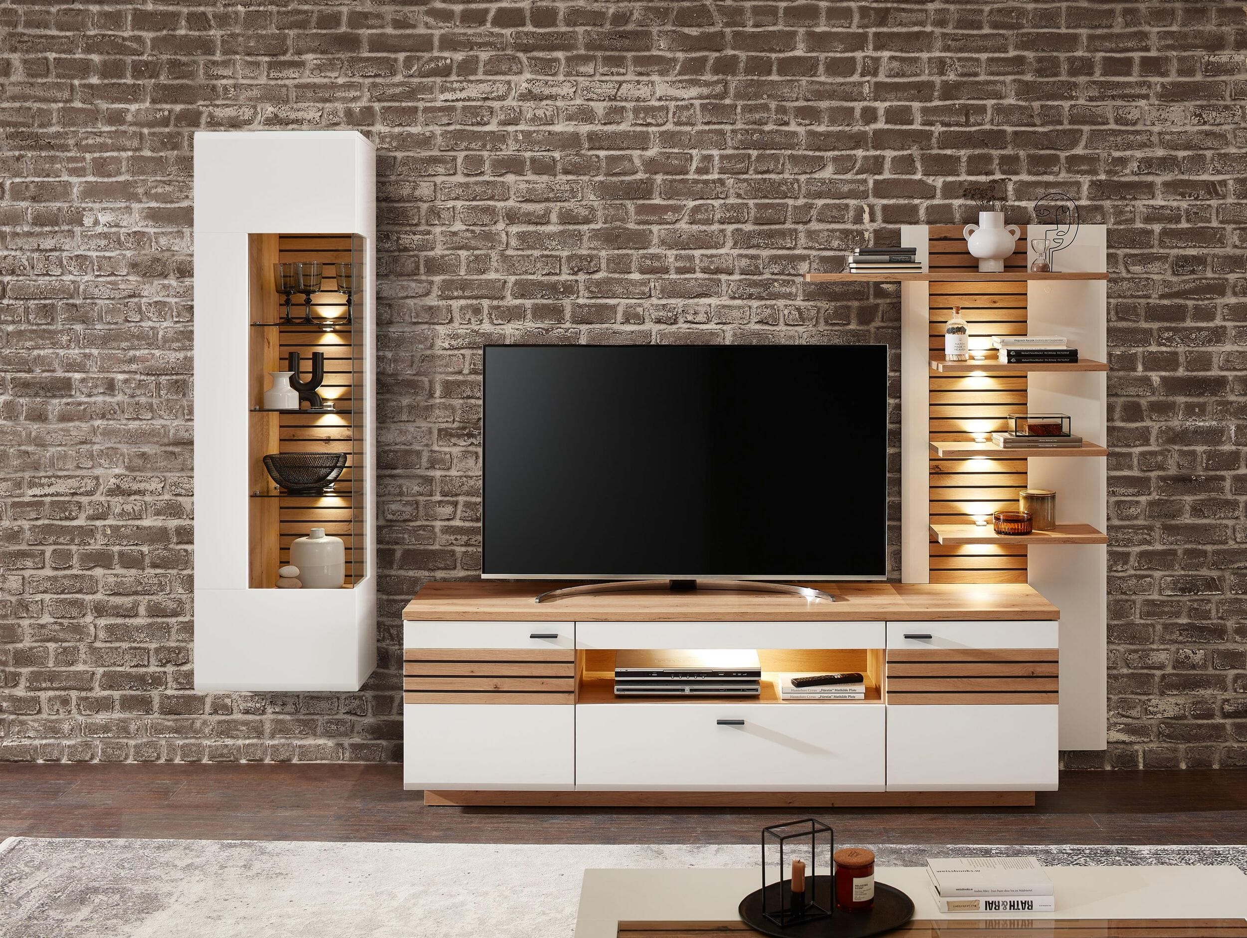 Wohnwand "Fresno" | 3-teilig in Weiß Matt & Artisan Eiche