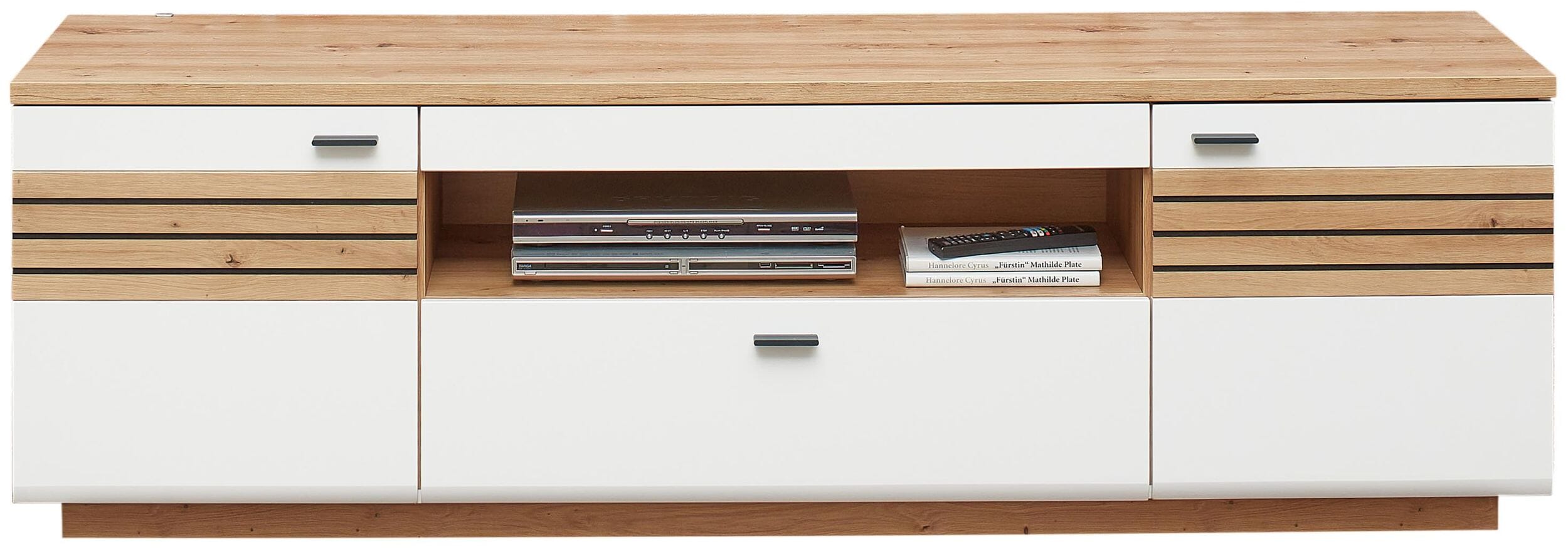 - TV-Unterteil (ca. 190 x 60 x 47 cm): Das Herzstück mit zwei Türen, einem Schubkasten und einem offenen Fach inklusive Kabeldurchlass für Ihr Multimedia-Equipment.