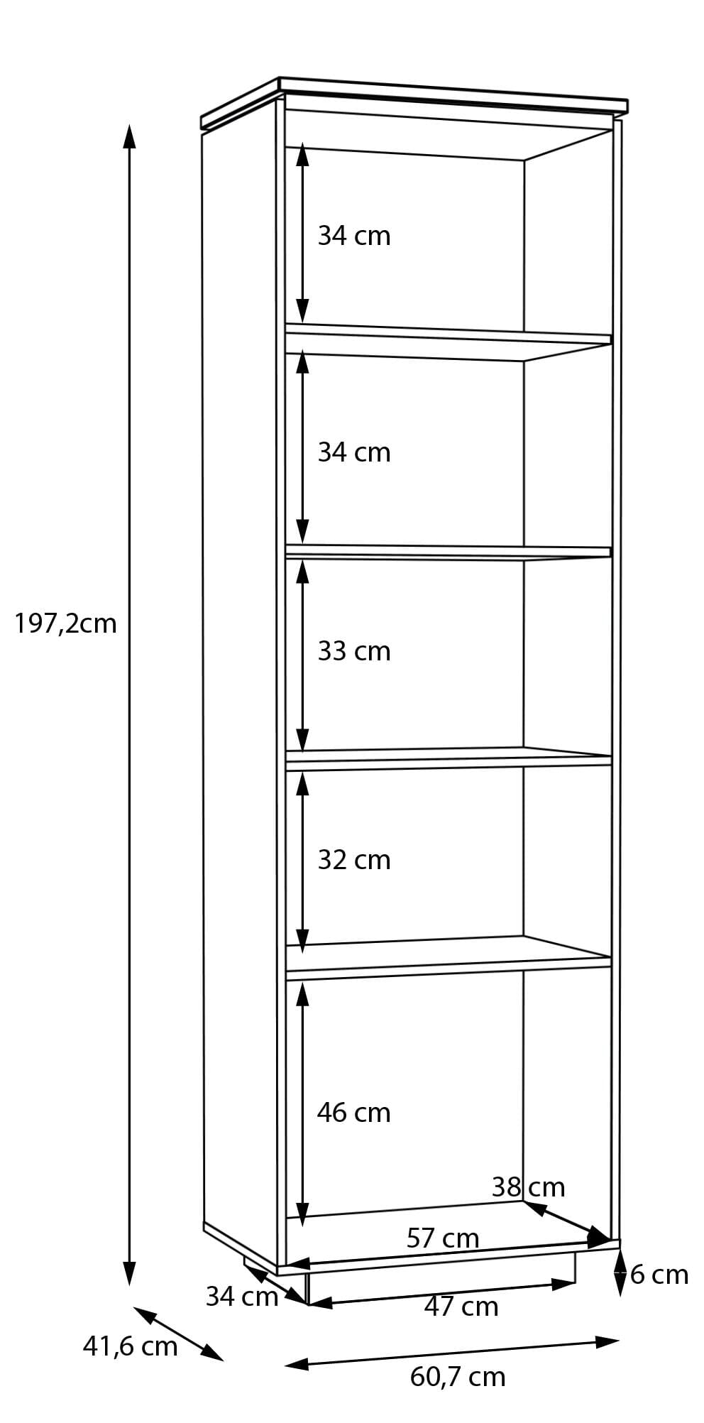 - Maße: B/H/T 60,7 x 197,2 x 41,6 cm