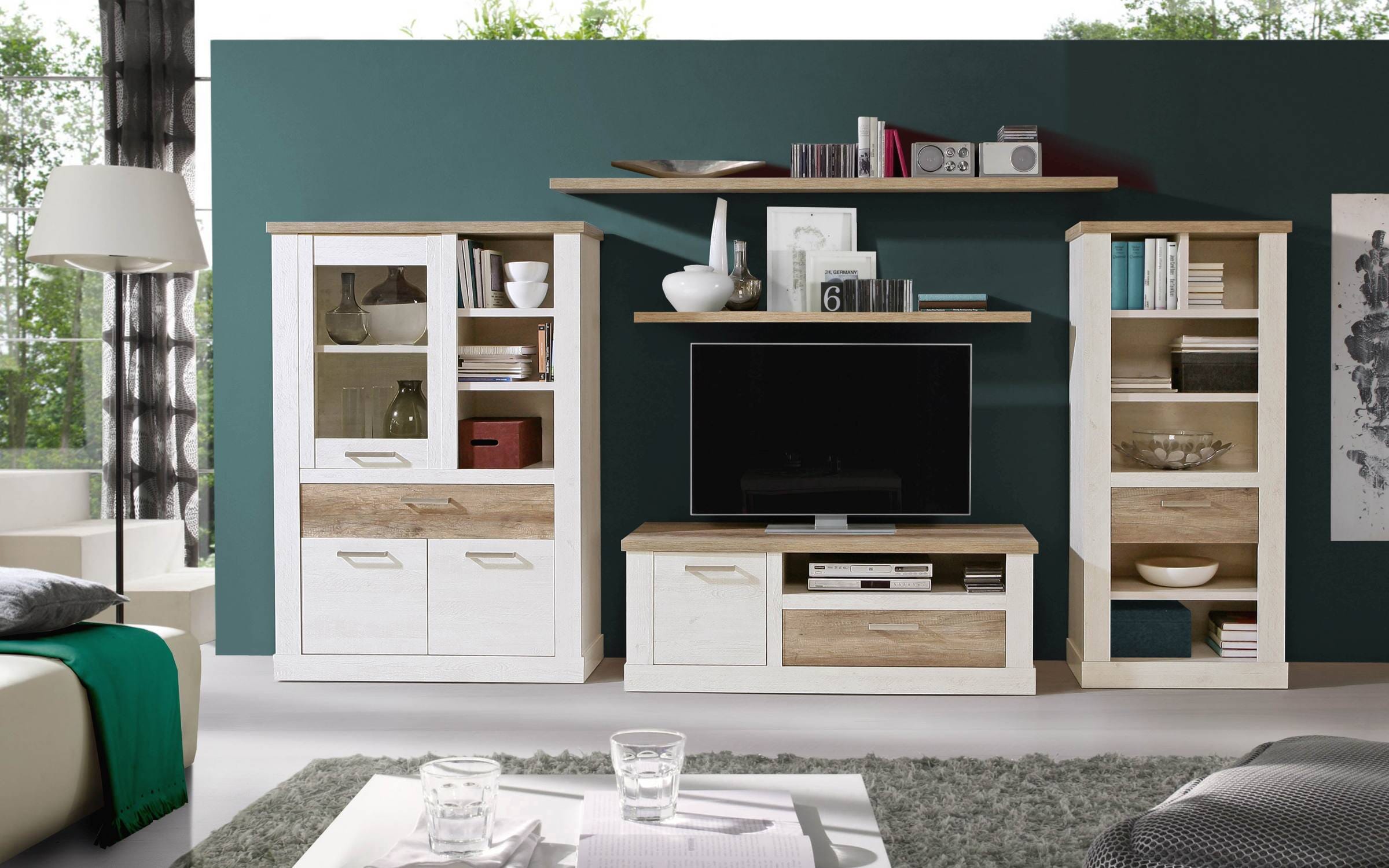 Wohnzimmerschrank DURO 5-tlg Optik: Pinie weiß von Forte