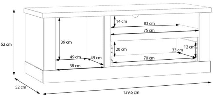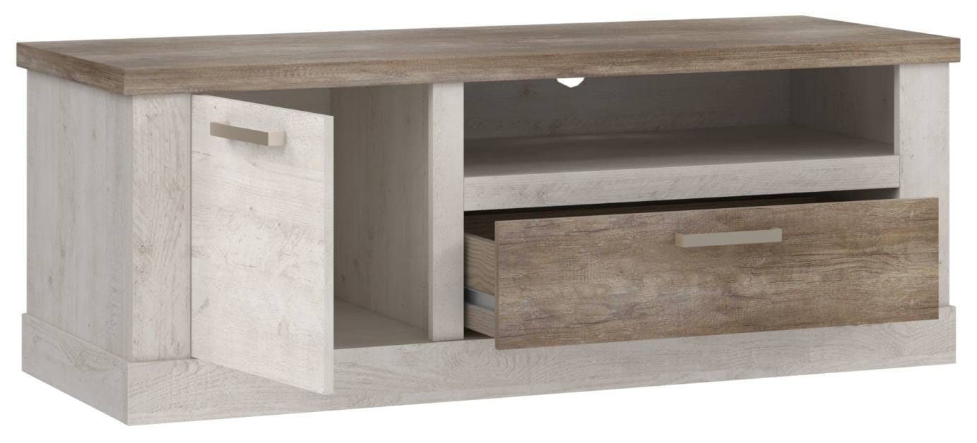 - TV-Board: 1 Türe, 1 Schubkasten, B/H/T 139,5 x 52 x 52 cm
