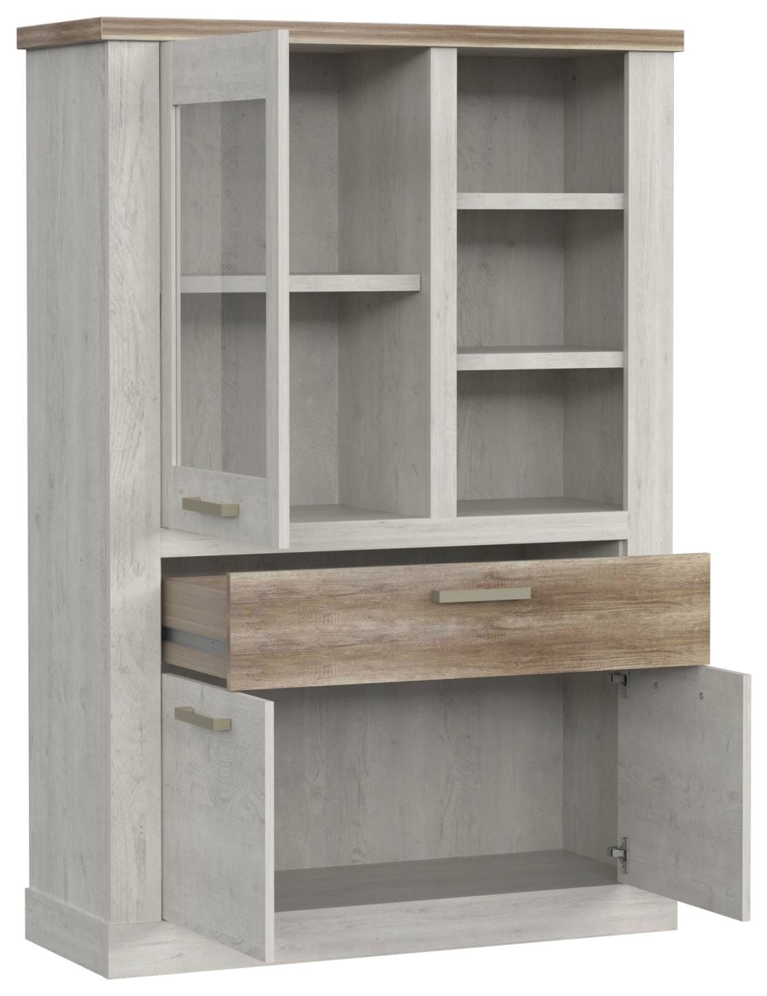- Highboard-Vitrine: 1+2 Türen, B/H/T 110 x 160,5 x 41,5 cm
