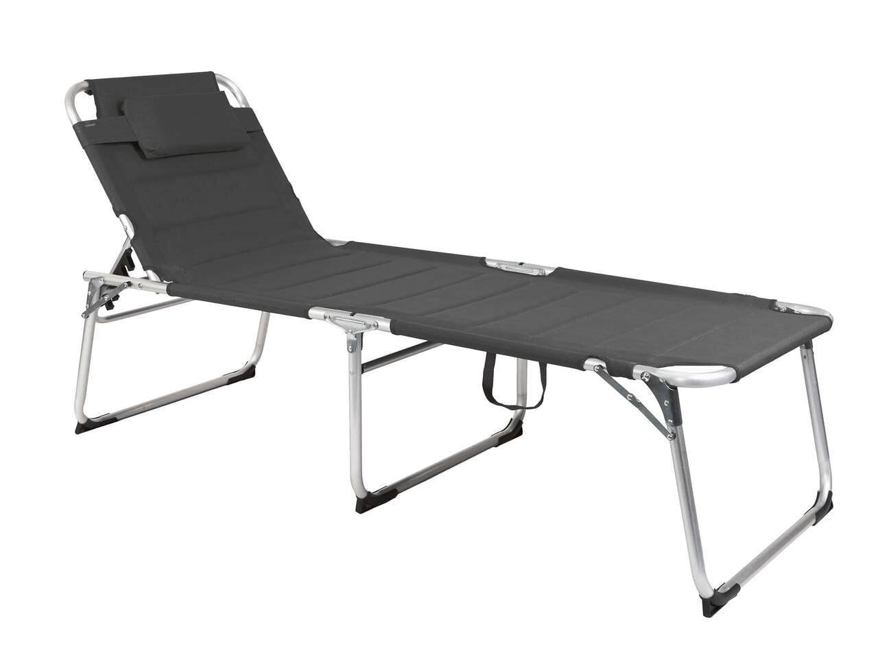 Das Ganze ist aber nicht nur nützlich, sondern auch richtig schön anzusehen. Drei Beine machen einen guten Job, und das dicke Polster wirkt in seinem modernen Anthrazit ziemlich sophisticated. Die Rückenlehne ist 4-fach verstellbar. Was wollen Sie noch mehr? Wunschlos glücklich liegen Sie in der Sonne.